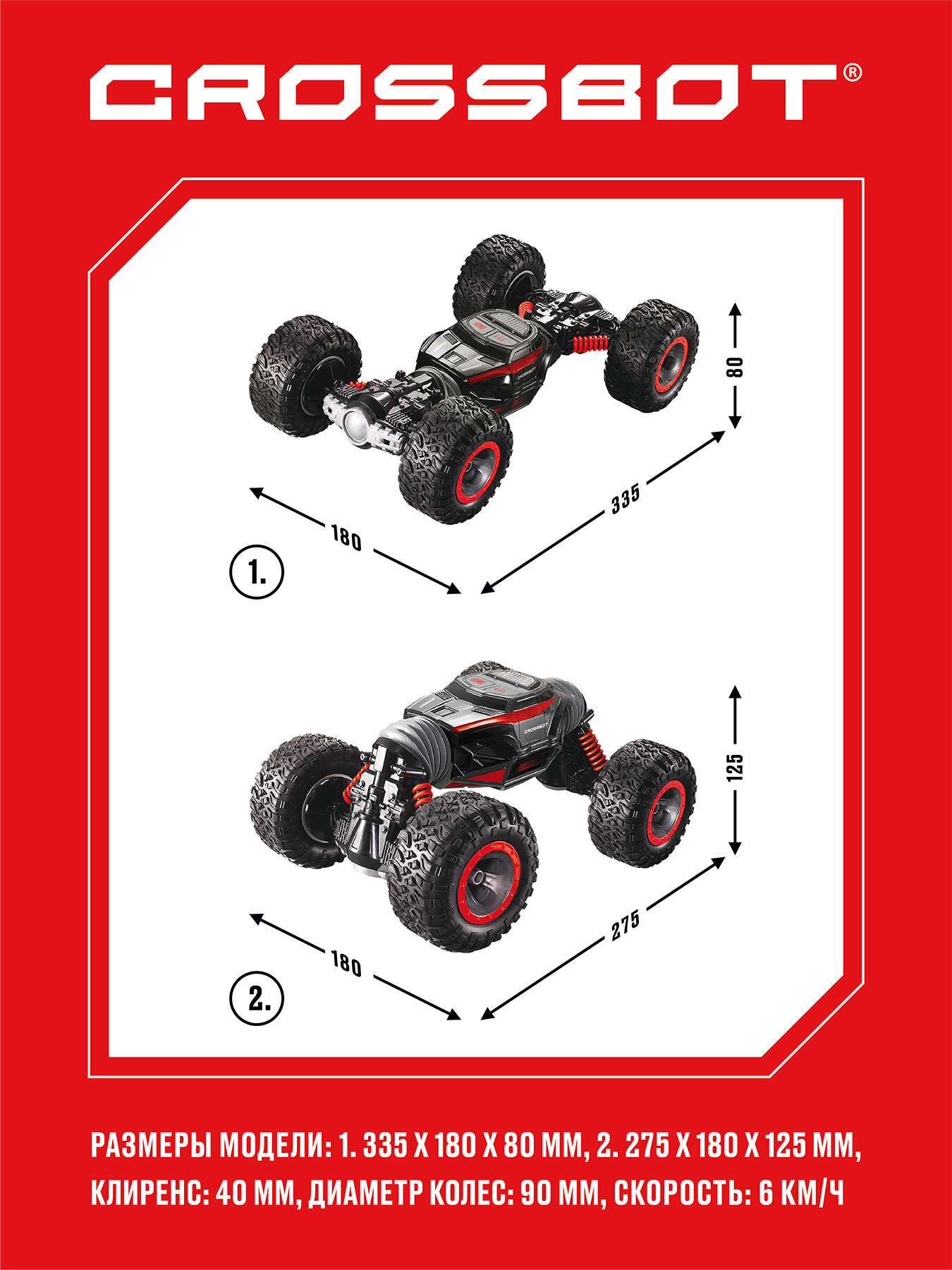 Машина на радиоуправлении Трансформация, 4 WD, переворот, режим высокой и низкой посадки, красная Crossbot 870612 информация:
