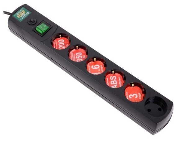 Сетевой фильтр Most LRG 1.6м (6 розеток) черный (пакет ПЭ) информация:
