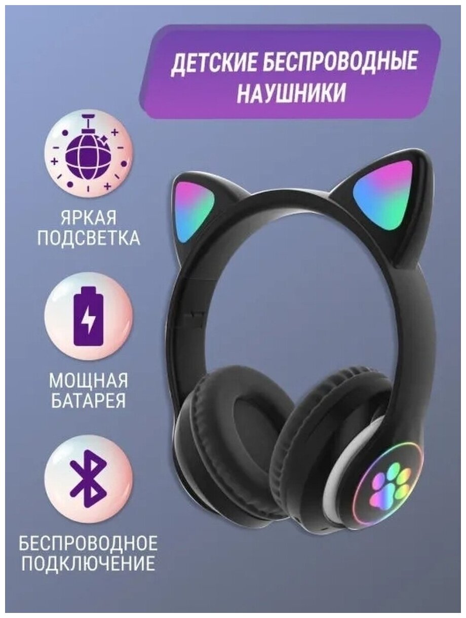 Отзывы на Беспроводные наушники Bluetooth со светящимися кошачьими ушами AKS-28 / черные