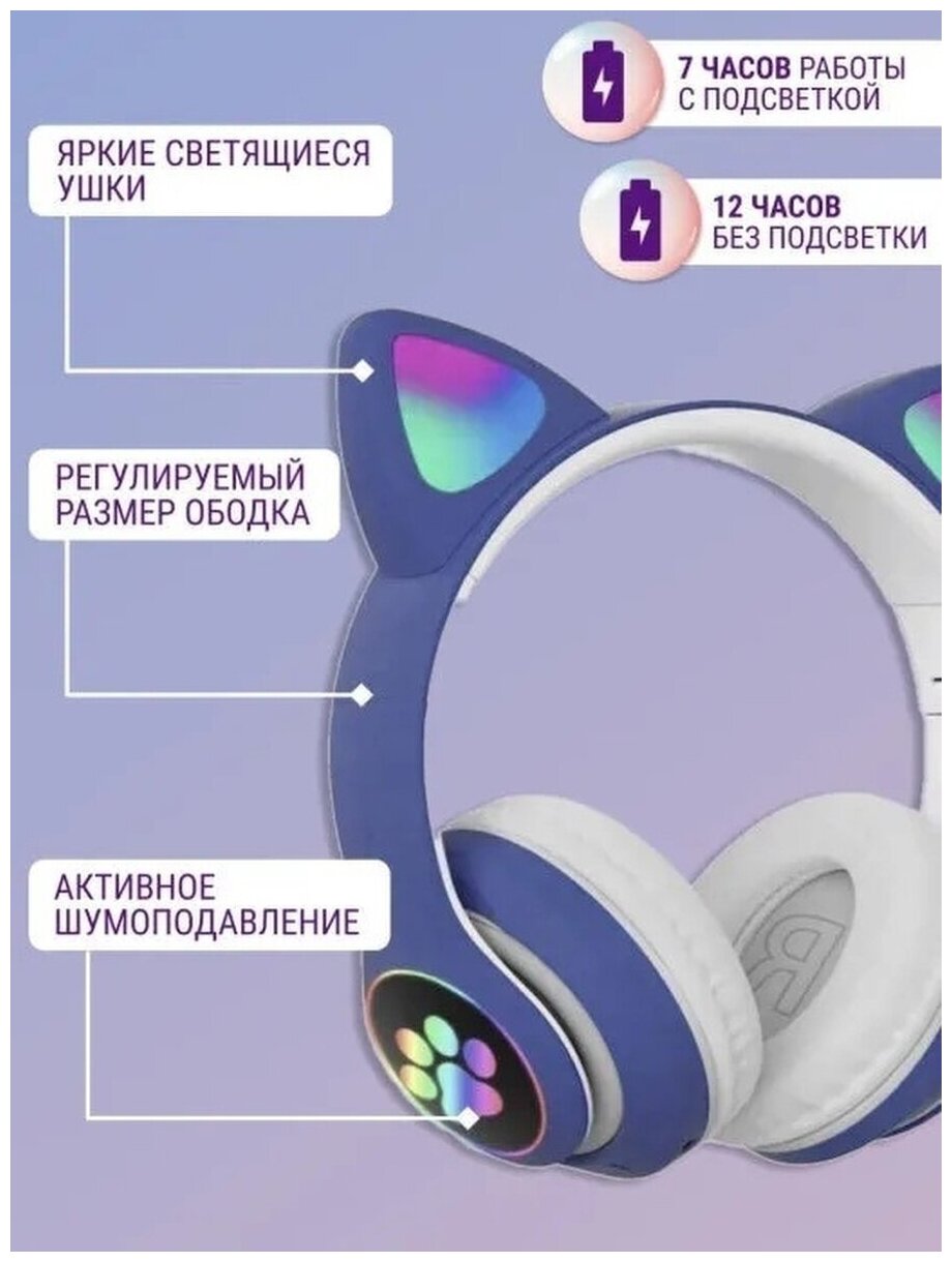 Отзывы на Беспроводные наушники Bluetooth со светящимися кошачьими ушами AKS-28 / синие