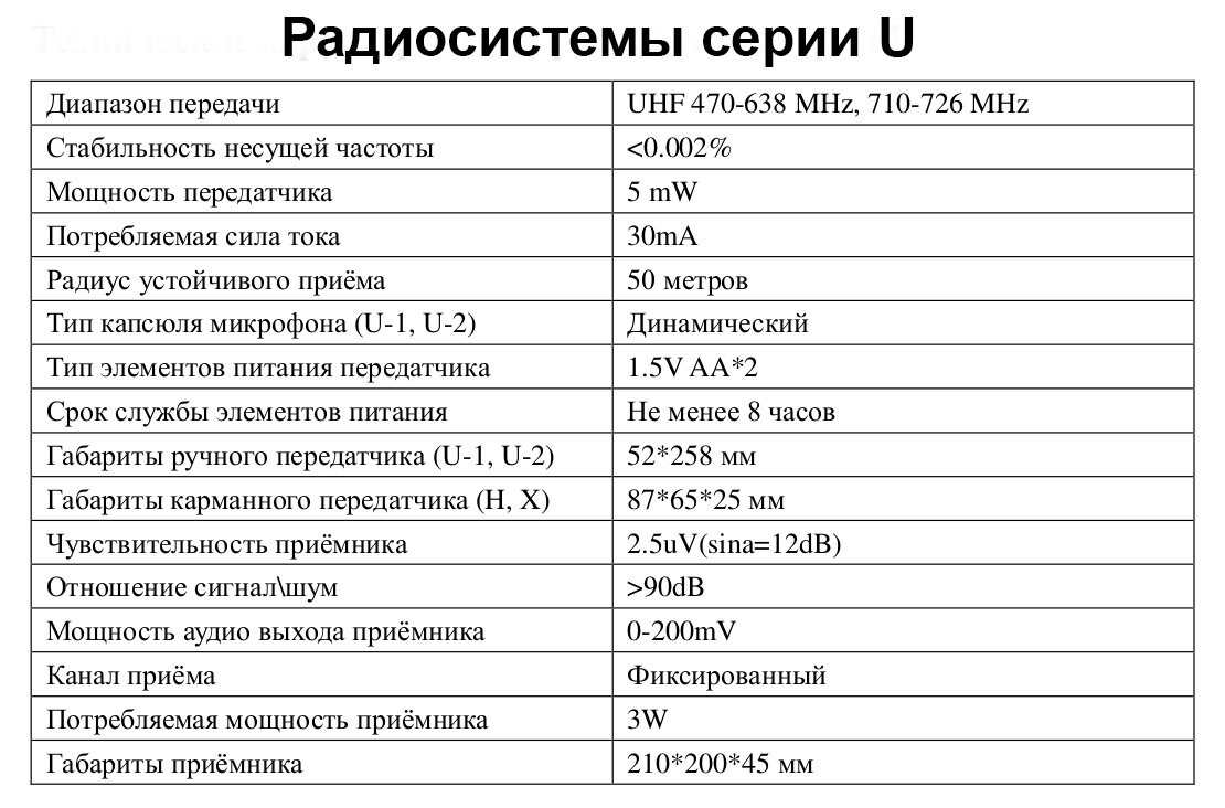 | Комплектация радиосистемы | микрофон |