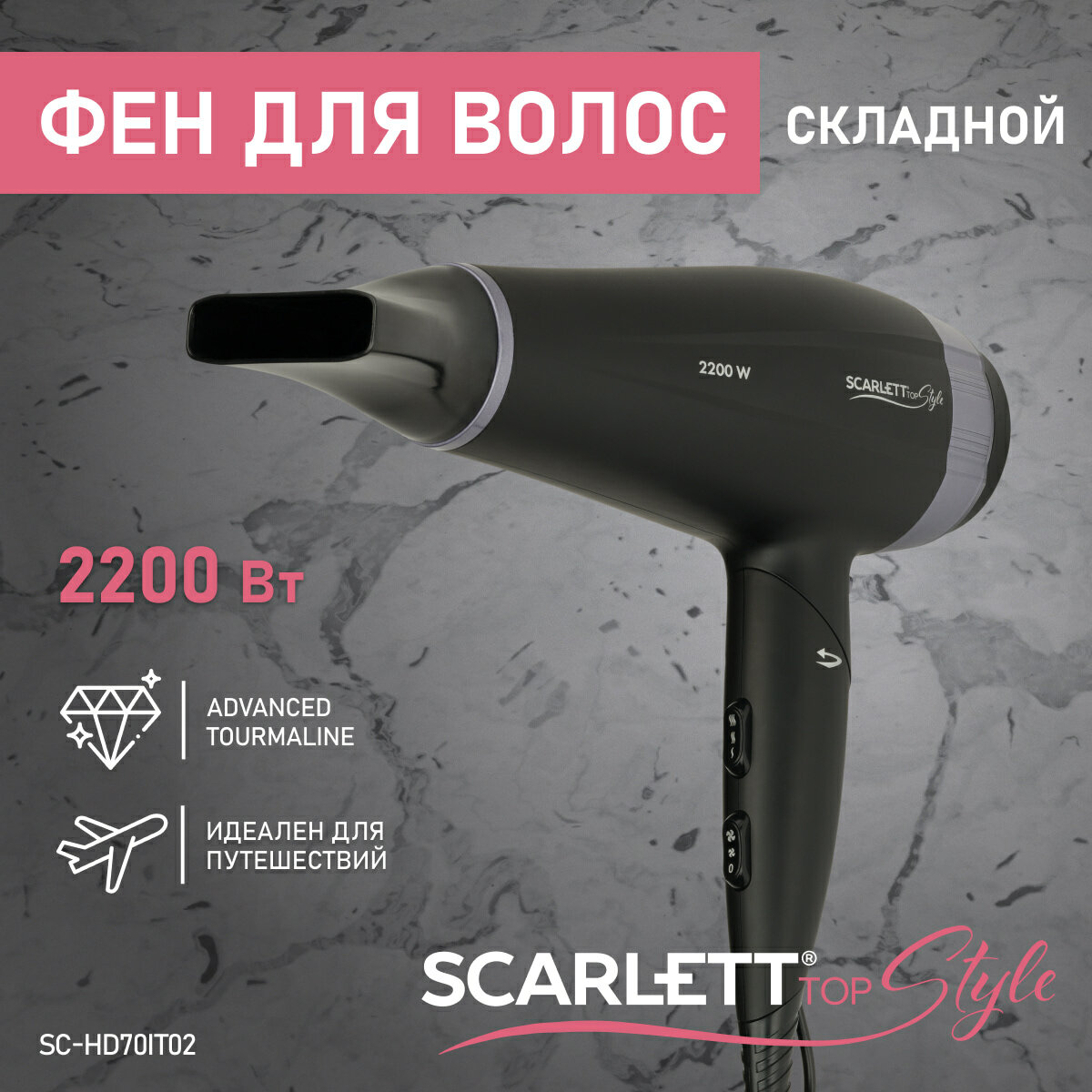 Фен SCARLETT SC-074 1400Вт ионизация складная ручка серый