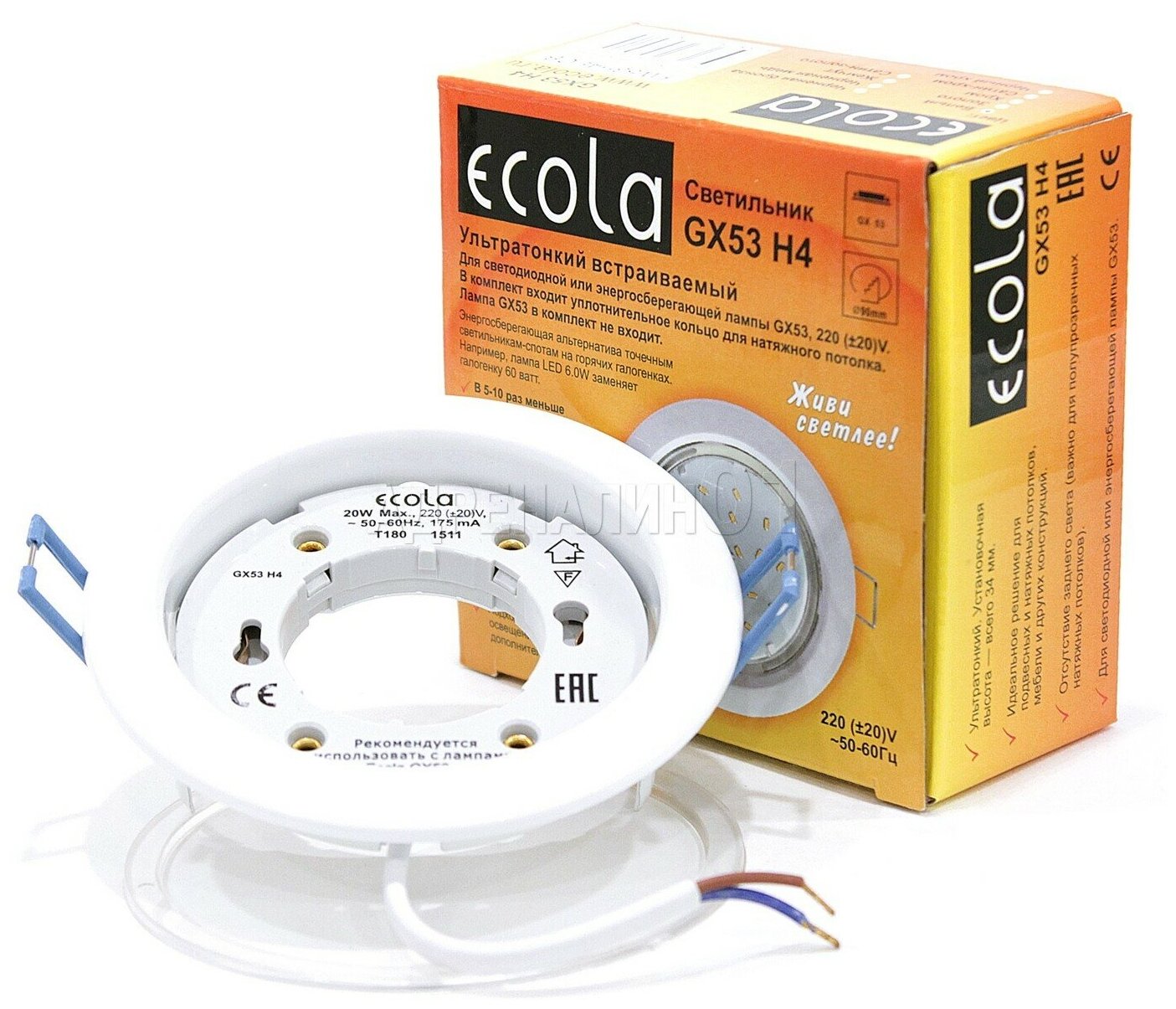 Отзывы на Светильник встраиваемый Ecola FW53H4ECB, GX53, 20 Вт, цвет арматуры: белый, цвет плафона: белый, с термокольцом,круглый, набор 1 шт.