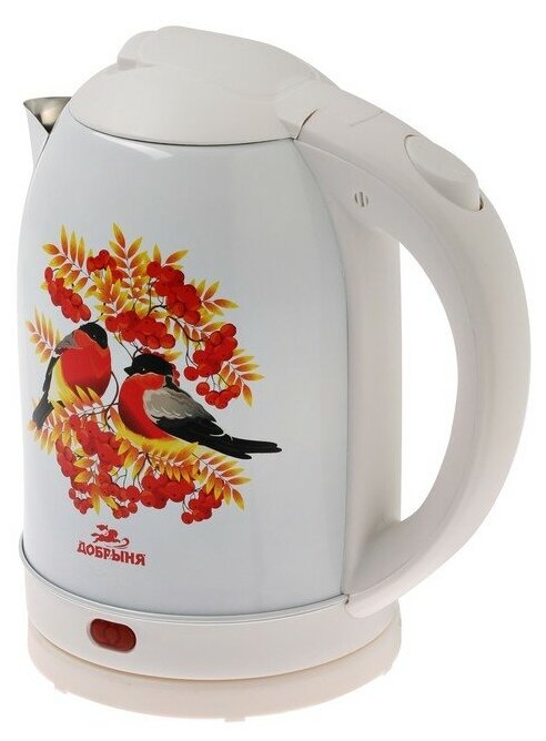 Чайник электрический"Добрыня" Do-1256, металл, 2 л, 2000 Вт, белый с рисунком"Снегири" Добрыня 93776 .