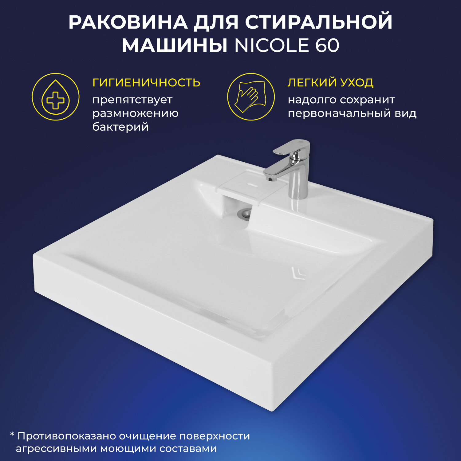 Раковина для ванной над стиральной машиной Итана Nicole 60 600х600х100 информация: