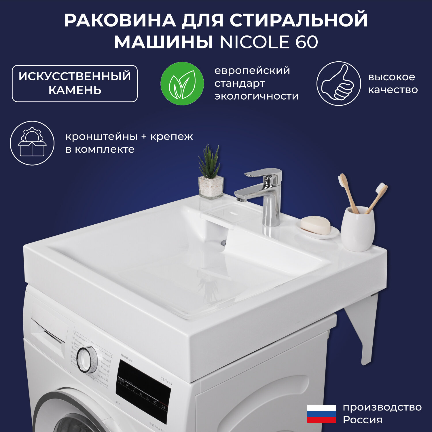 Отзывы на Раковина для ванной над стиральной машиной Итана Nicole 60 600х600х100