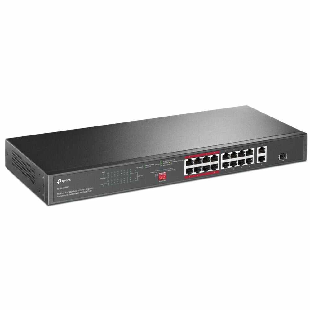 TP-Link TL-SL1218P 18-портовый коммутатор с 16 PoE+ портами 10/100 Мбит/с и 2 гигабитными портами