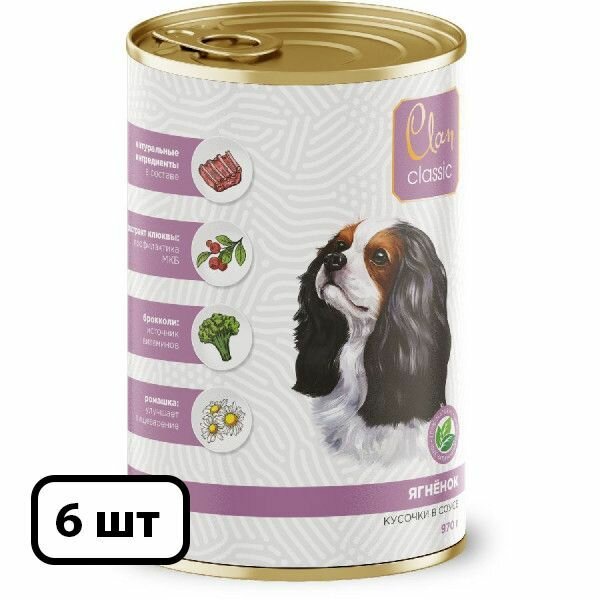 Clan Classic влажный корм для собак, с ягненком, кусочки с соусе, в консервах - 970 г х 6 шт информация: