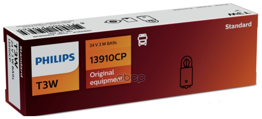 Лампа Philips Галогеновая T3w Ba9s 3w Philips^13910cp Philips арт. 13910CP информация: