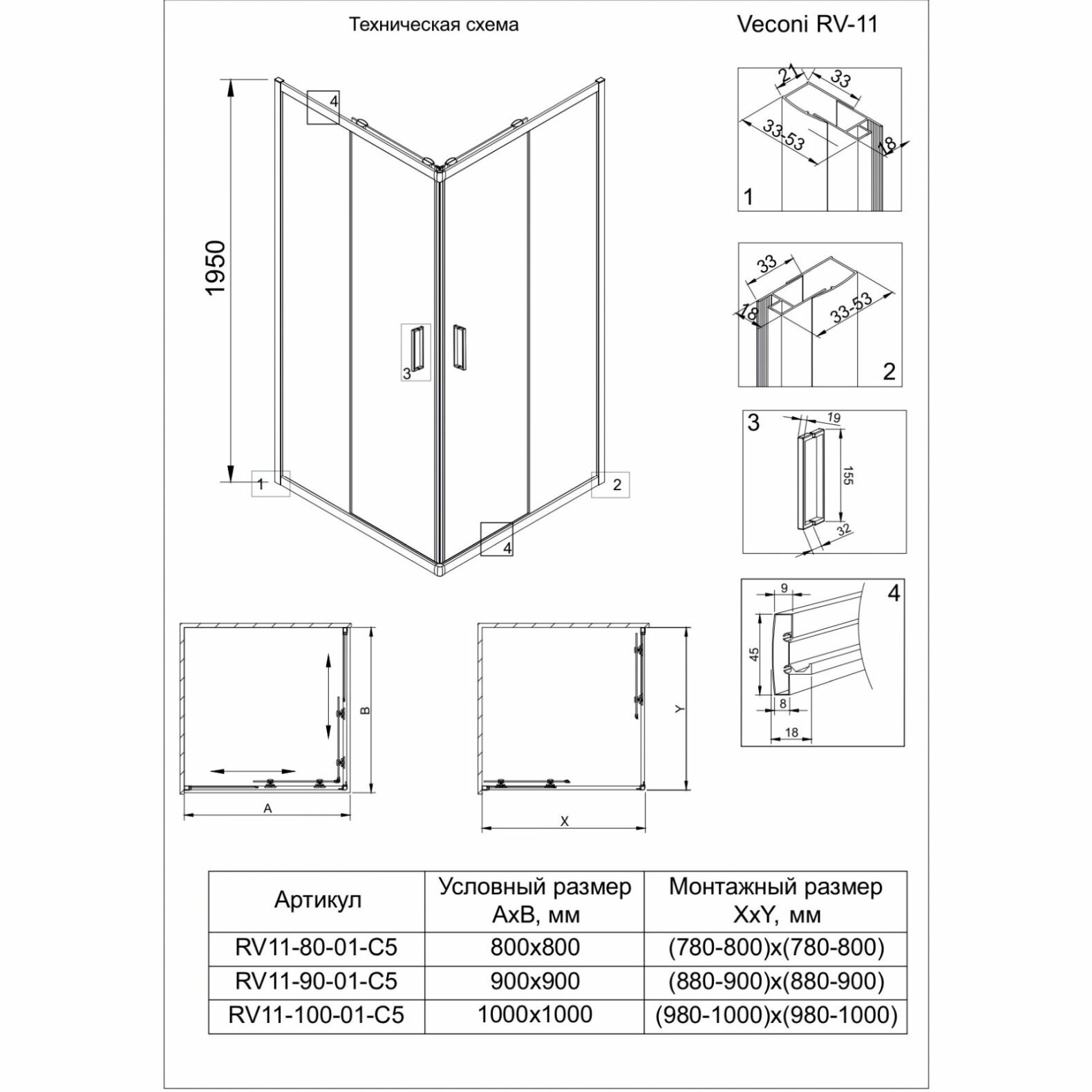 Душевой уголок Veconi Rovigo RV11-100-01-C5 100х195 см профиль хром, стекло прозрачное информация: