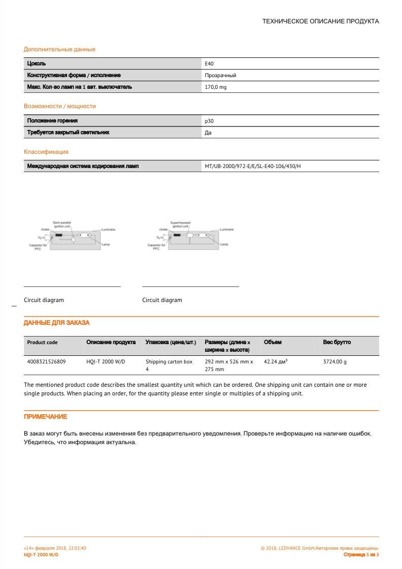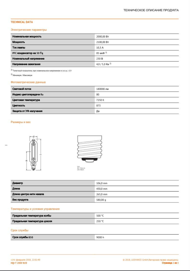 Лампа металлогалогенная OSRAM HQI-T 2000 W/D/I информация:
