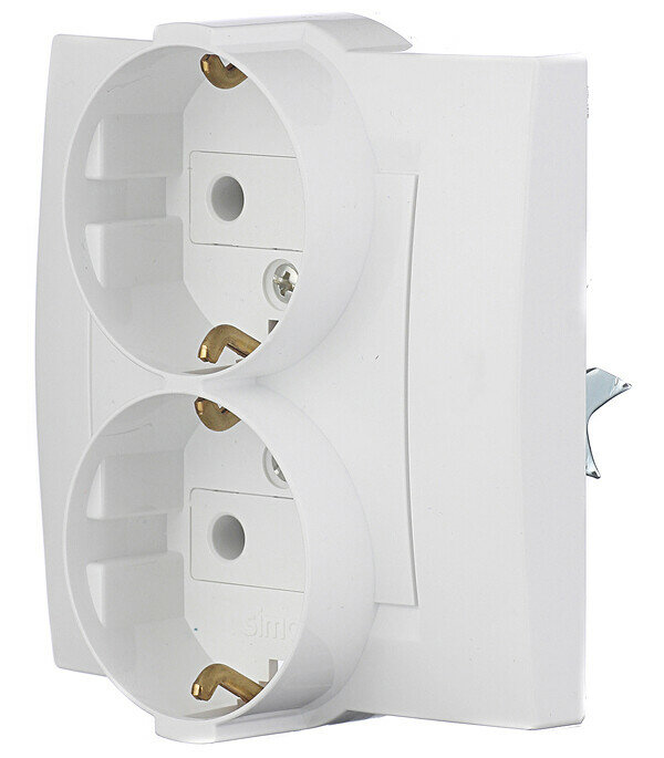 Розетка с рамкой Simon 15 1590459-030 двойная скрытая установка белая с заземлением информация: