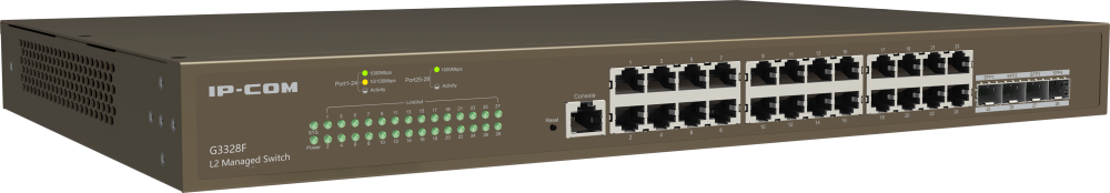 IP-COM G3328F Управляемый гигабитный коммутатор L2, 24 порта, 4 SFP, 1 console порт информация: