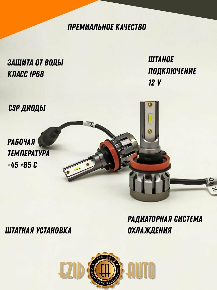 Светодиодные лампы для автомобиля TP8, цоколь H11, мощность на пару 100 ватт, 6000К белый свет, 2 шт комплект информация: