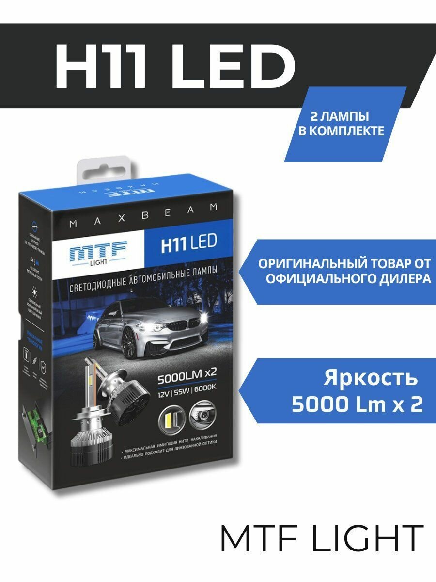 Светодиодные лампы MTF Light H11 серия MaxBeam 6000K информация: