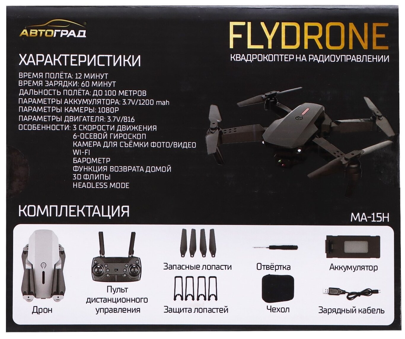 Квадрокоптер "Автоград FLYDRONE" с камерой 1080р, барометром и Wi-Fi