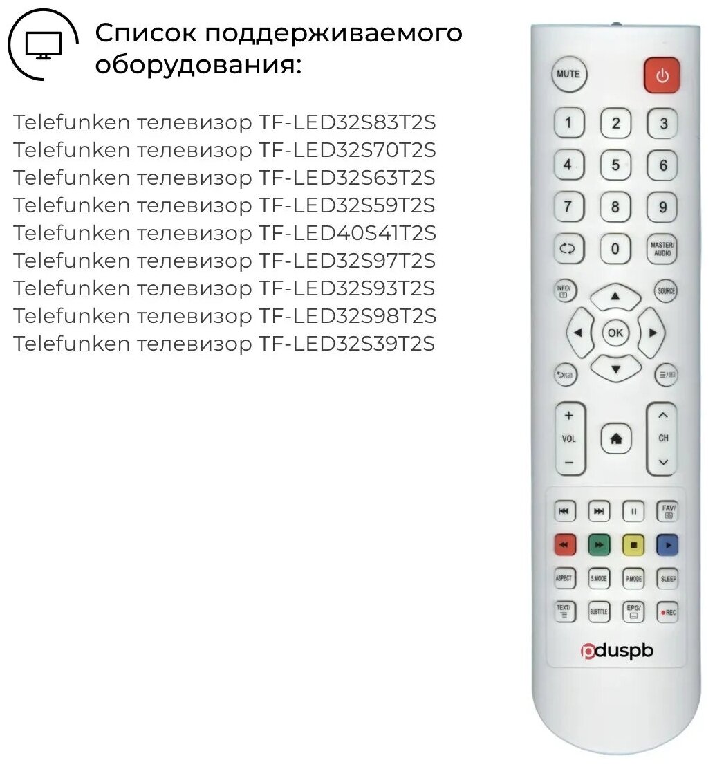 Пульт PDUSPB для Telefunken JKT-106B-2-HOME (белый) информация: