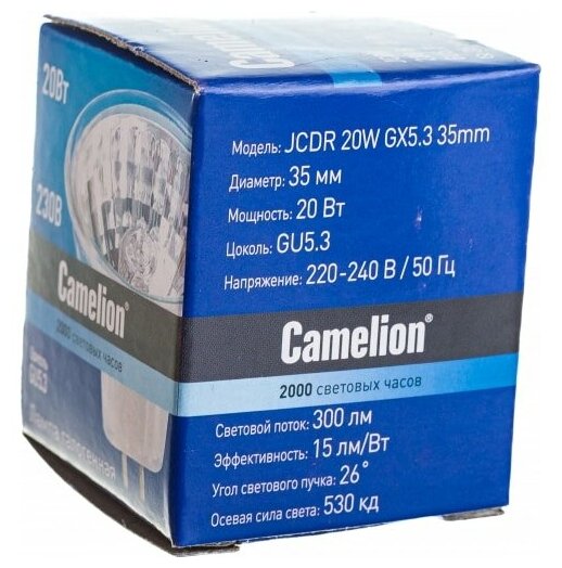 Отзывы на Лампа галогенная 20Вт 220В GX5.3 35mm - JCDR 20W GX5.3 35mm (Camelion)(код 07761 И)
