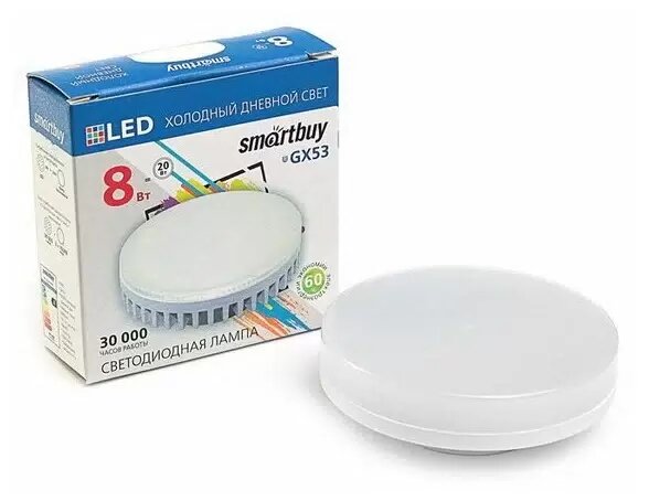 Отзывы на Светодиодная LED лампа SmartBuy GX53 св/д 8W(650lm) 6000K 6K 75x29 матов. стекло SBL-GX-8W-6K