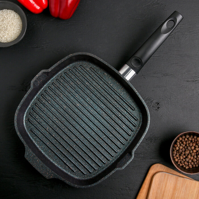 10 цен на Сковорода-гриль квадратная Granit ultra, 28x28 см , съёмная ручка, стеклянная крышка, антипригарное покрытие, цвет чёрный