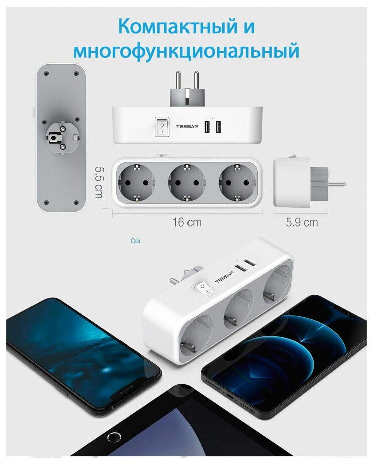 tessan Сетевой фильтр TESSAN JW402 Grey