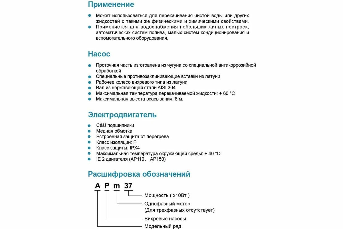 LEO Вихревой насос APm 90, 750 Вт, 220В, Qmax. 2,1 m3h, Hmax. 90 m 972 информация:
