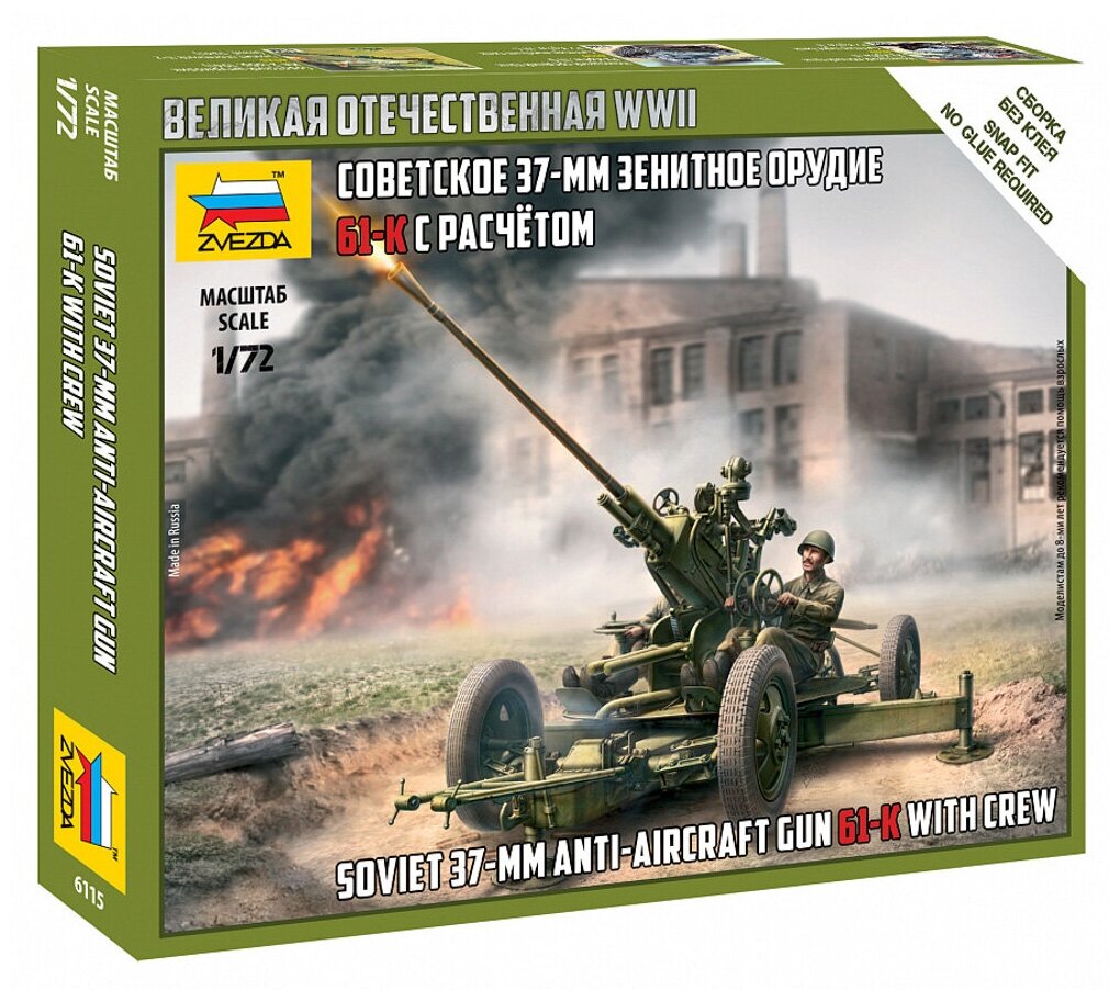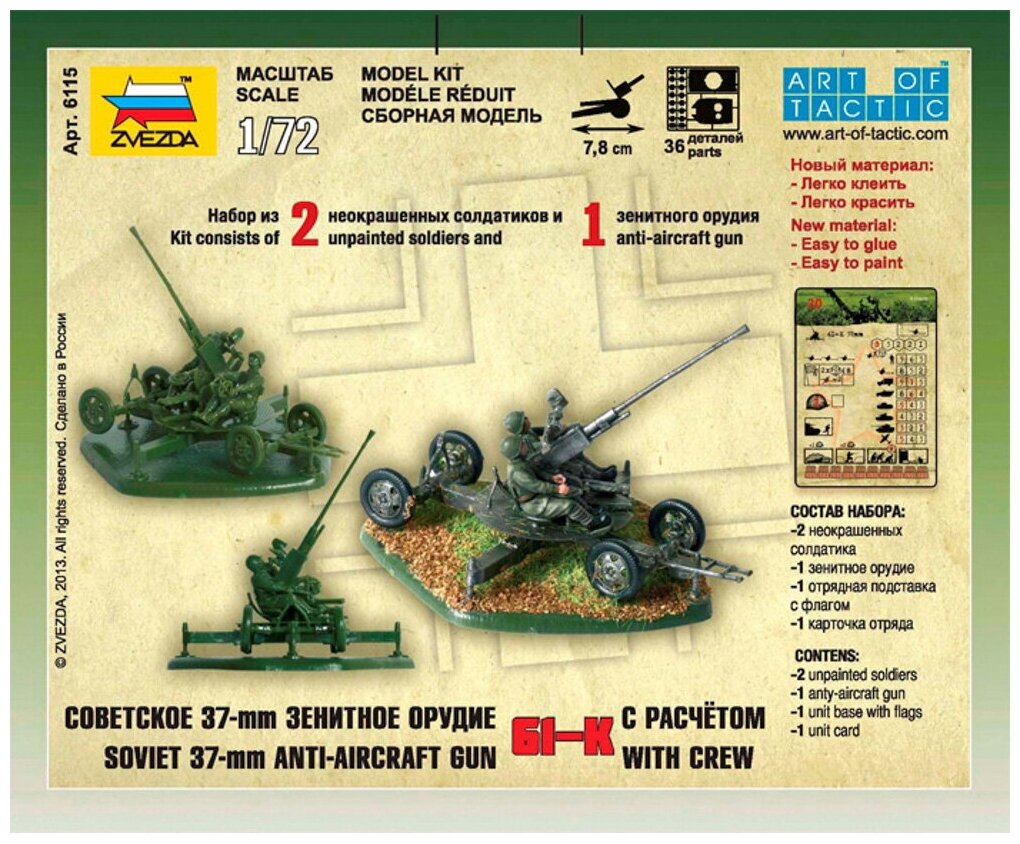 1/72 Советское 37-мм орудие 61-К с расчётом Звезда 6115 информация: