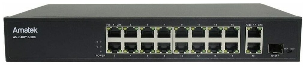 Отзывы на Коммутатор Amatek AN-S18P16A (16 портов (100Мбит/с, RJ45, PoE+), 2 порта (1000Мбит/с, RJ45), 1 слот