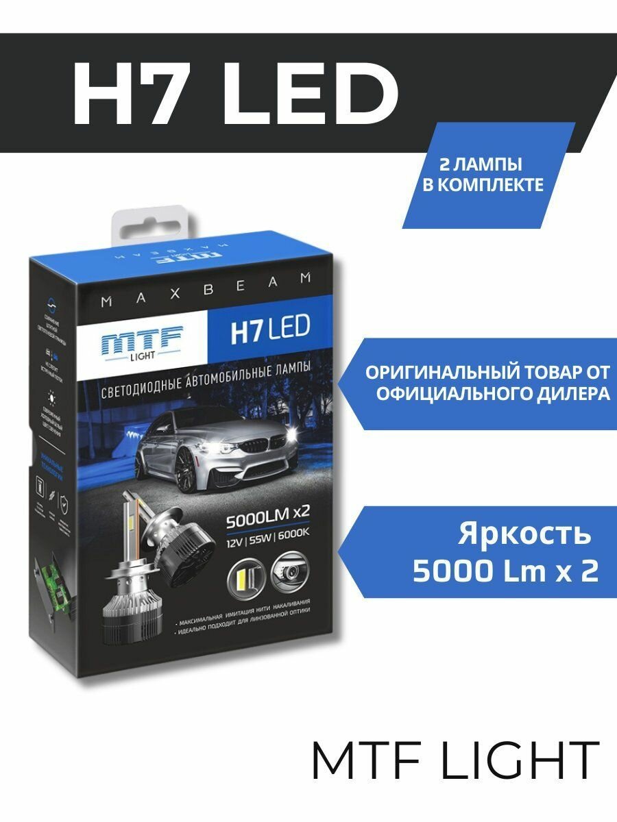 Светодиодные лампы MTF Light H7 серия MaxBeam 6000K информация: