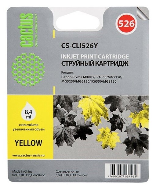 Чернила Cactus CS-I-CLI526Y желтый 100мл для Canon Pixma iP4850/MG5250/MG5150/iX6550 информация: