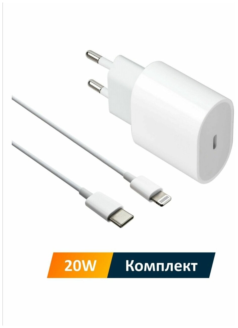 Быстрое сетевое зарядное устройство для айфон 20W для Apple Зарядка для iPhone SE/XR/11/12/12Pro и iPad, Tipe-C с кабелем lightning