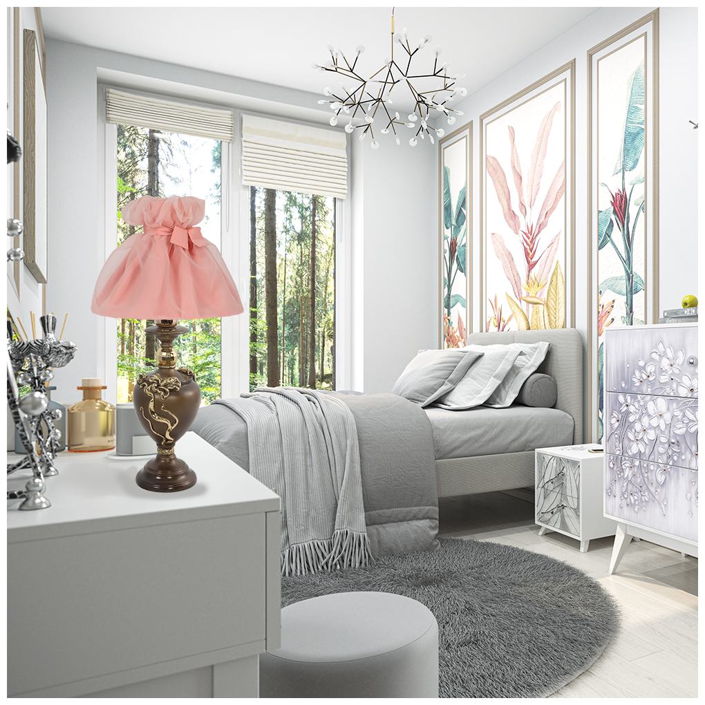 Настольная лампа BOGACHO Флер де Лис бронзовая с розовым абажуром Мадлен информация: