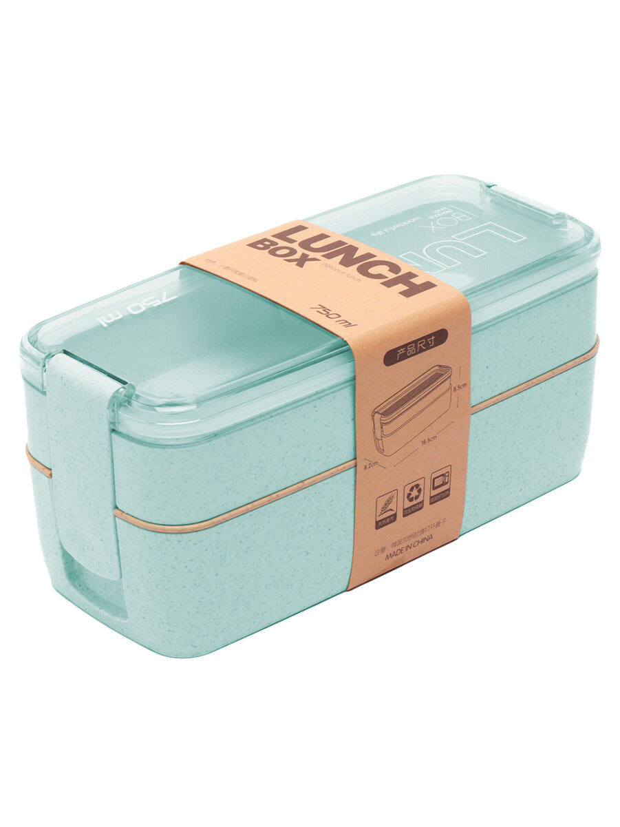 Ланч-бокс со столовыми приборами, контейнер для еды пластиковый двухуровневый, 750 мл, зеленый 378 ₽