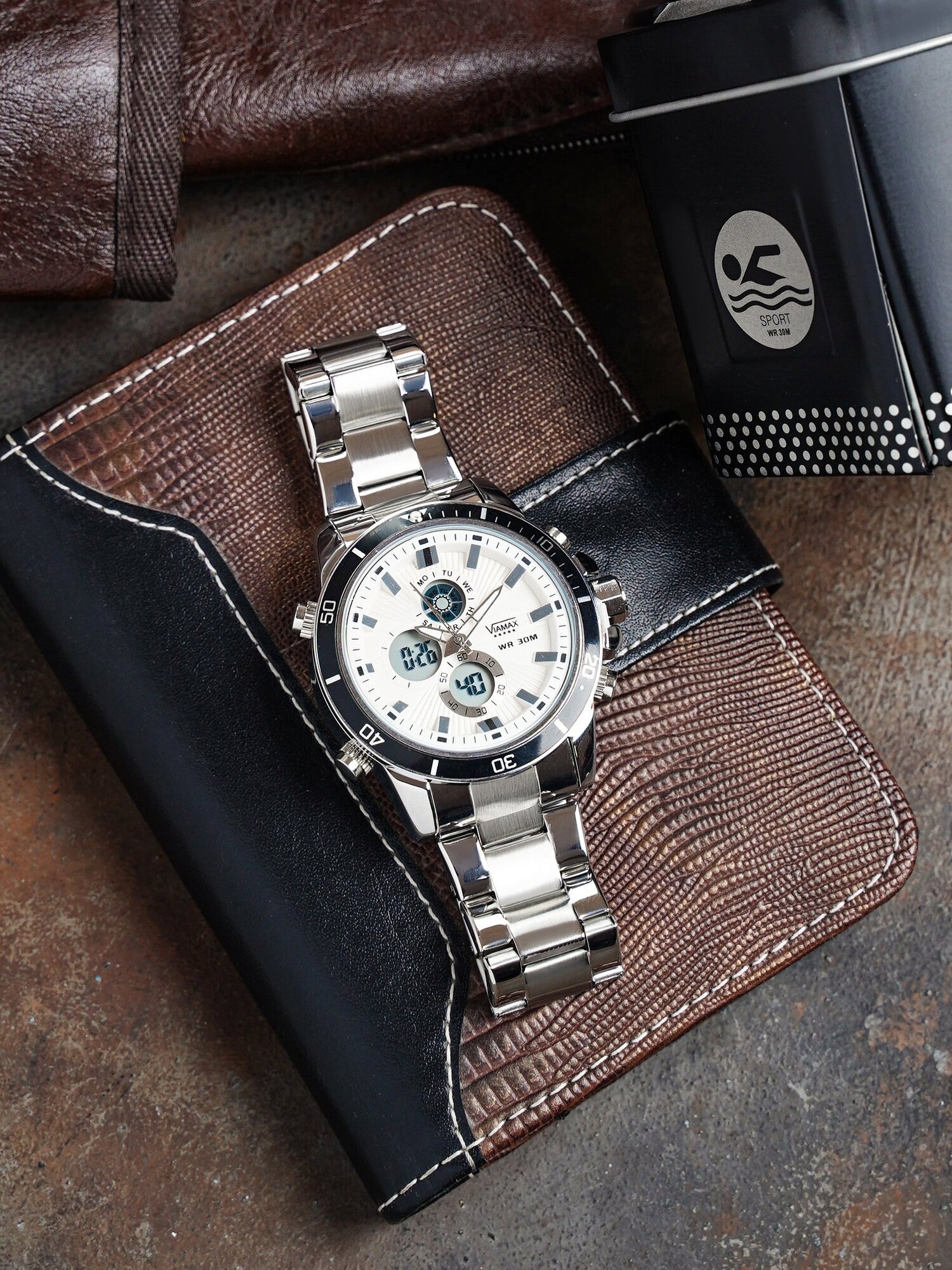 Часы наручные мужские кварцевые классика/Viamax/Противоударные, водонепроницаемые/Будильник, секундомер, подсветка/Белые информация:
