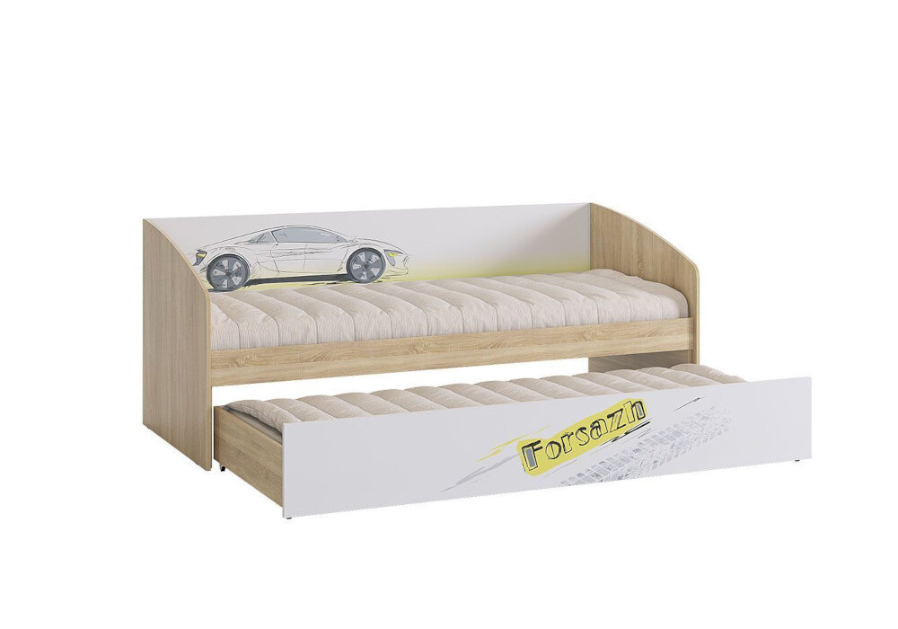 Детская кровать Форсаж 80х200 см, с дополнительным спальным местом, с ящиком, Дуб Сонома / Белый 19 820 ₽