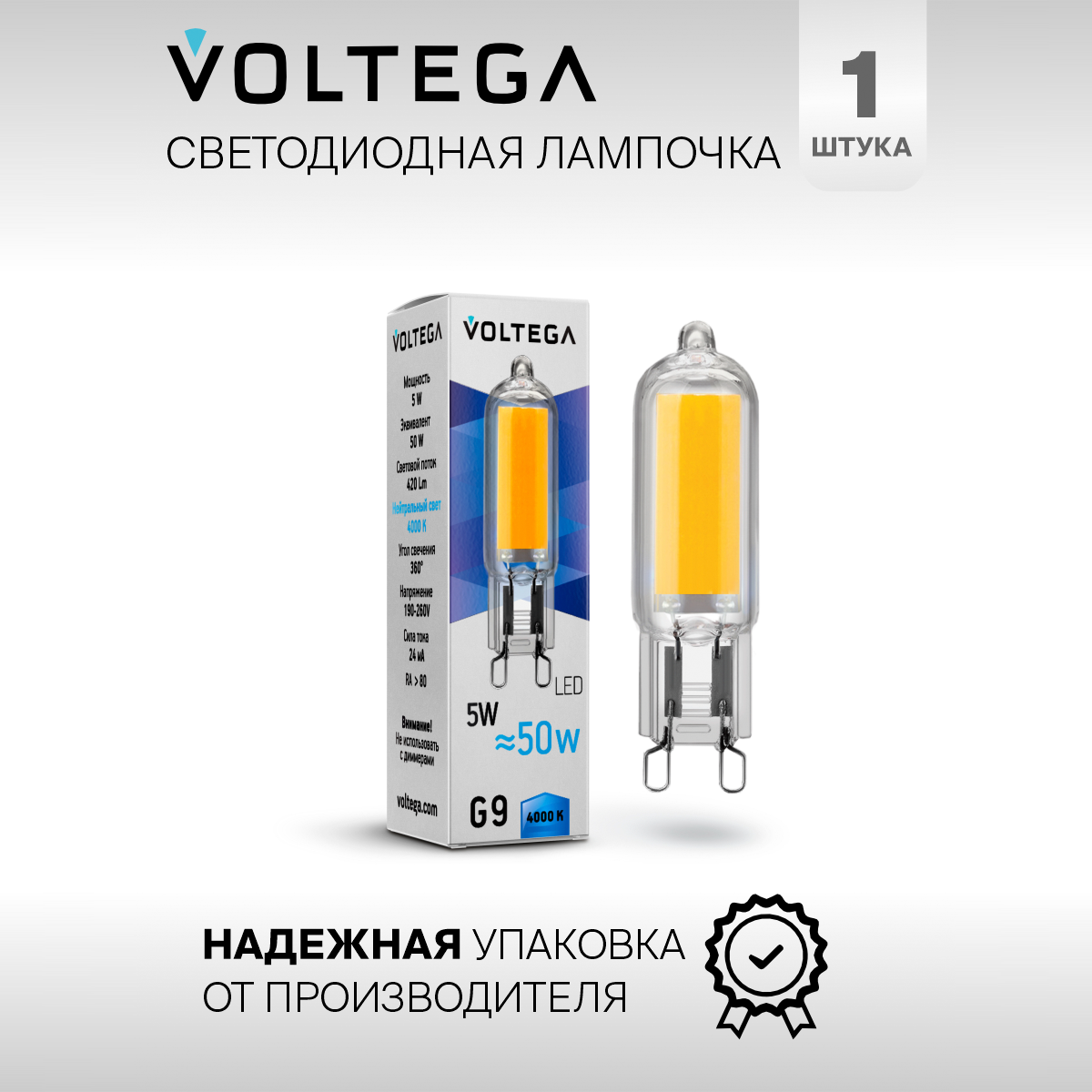 Светодиодная лампа VOLTEGA Капсула G9 4000К 5W 7091 информация: