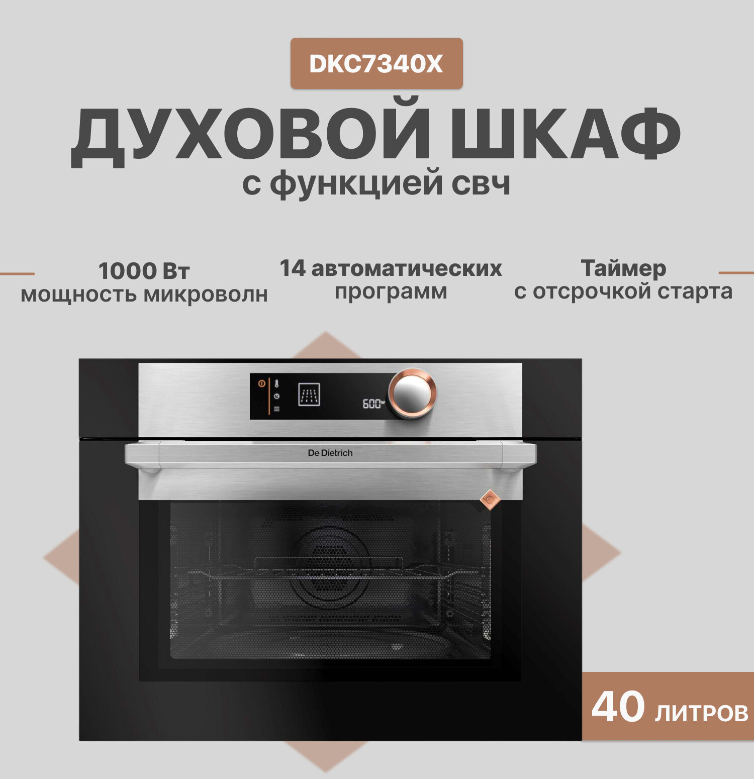 Микроволновая печь встраиваемая De Dietrich DKC7340X, серебристый информация: