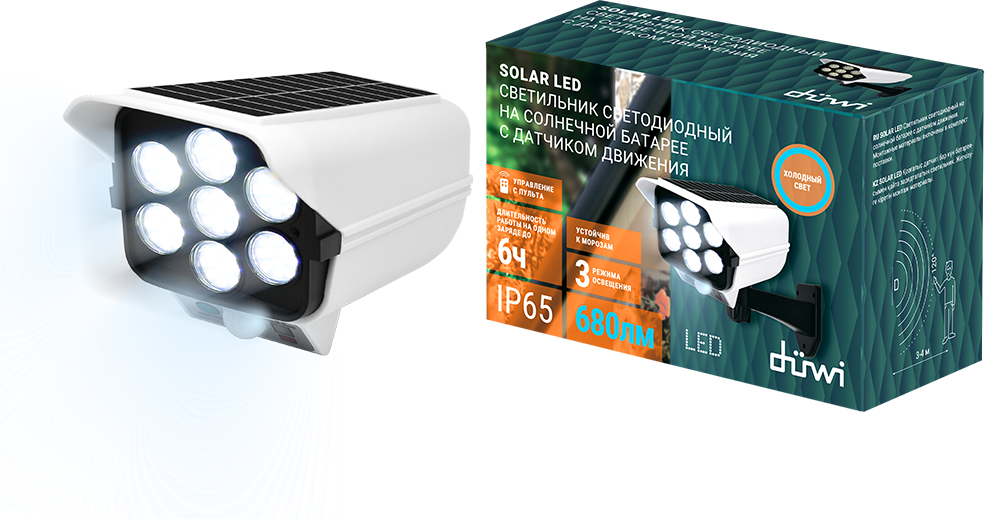 Светильник светодиодный с датчиком движения Solar LED на солнечных батареях, 10Вт, 6500К, 600Лм, IP65, цвет черный, duwi, 25015 9
