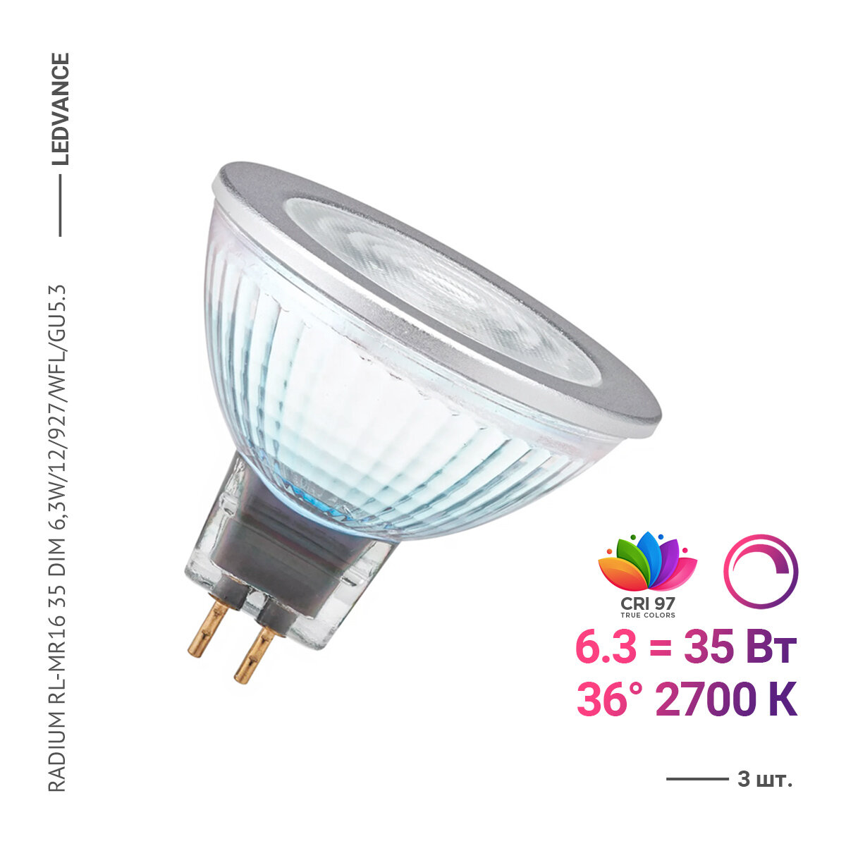 Ledvance RADIUM RL-MR16 35 DIM 6,3W/12/927/WFL/GU5.3 (3 шт) информация: