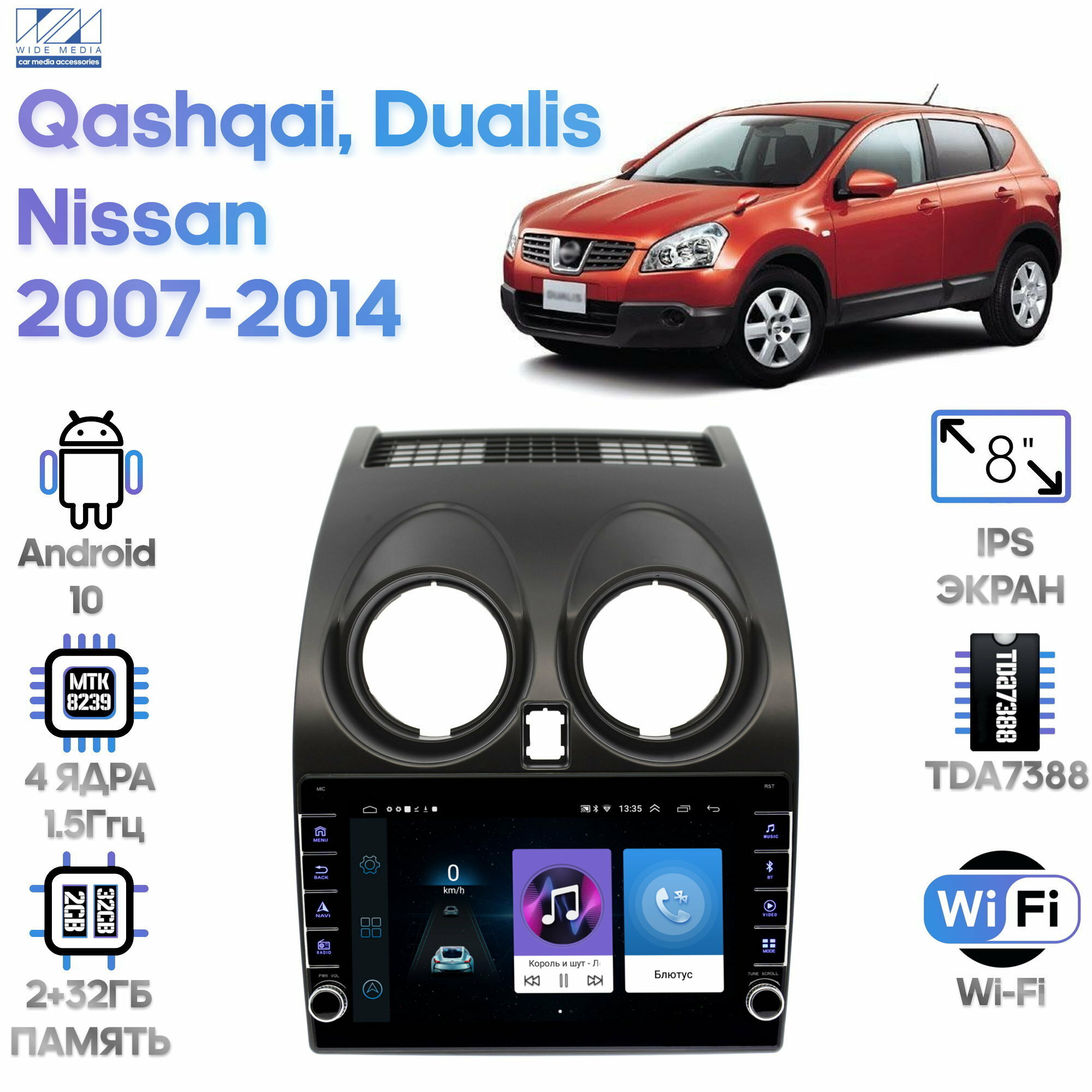 Штатная магнитола Wide Media Nissan Qashqai, Dualis 2007 - 2014 [Android 10, WiFi, 2/32GB, 4 ядра] информация: