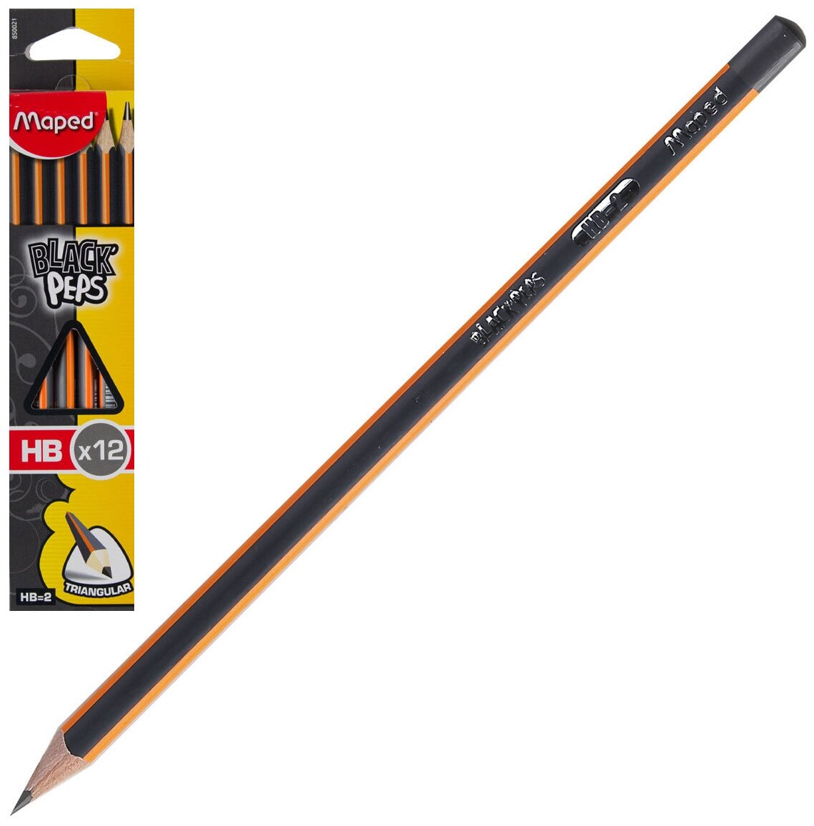 Карандаши чернографитные MAPED, набор 12 шт., "Black Pep's", НВ, трехгранные, без резинки, 850021 информация: