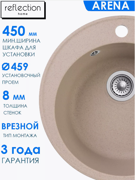 Отзывы на Мойка кухонная врезная Reflection Arena бежевая RF0148BE размер 48*48*18см