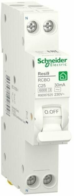 Отзывы на R9D87625 Дифференциальный автоматический выключатель Schneider Electric Resi9 1П+N 25А 30мА, тип AC, 6кА, C