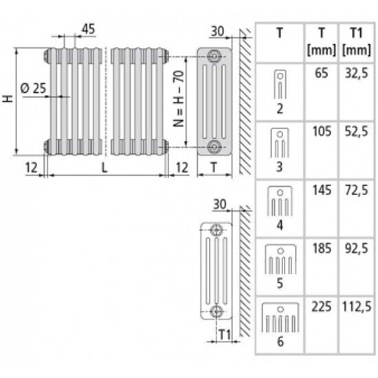 Радиатор ARBONIA трубчатый 3057 секций-20, боковое подключение №12, 3/4" информация: