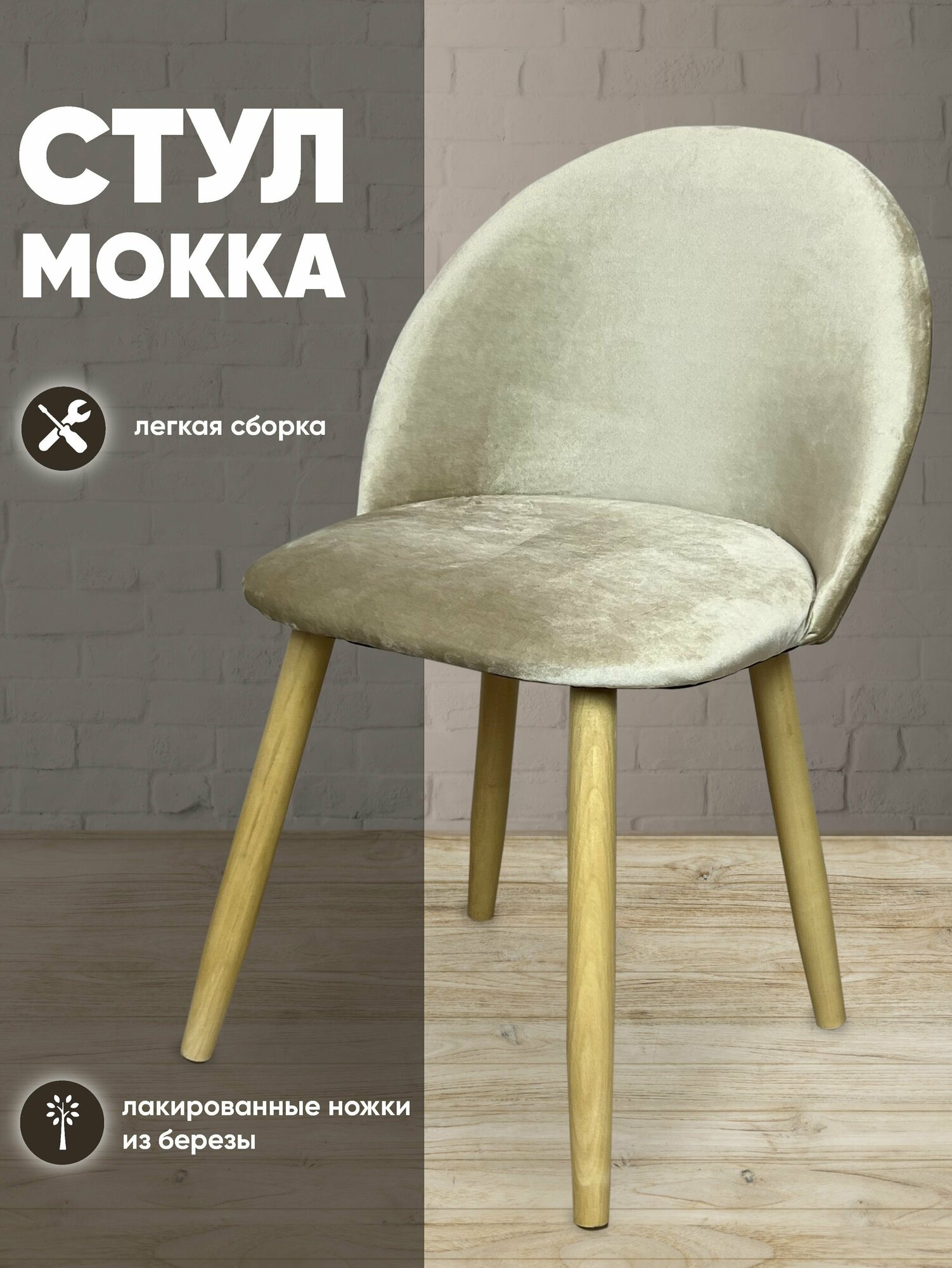 Стул со спинкой мягкий кухонный Мокка в детскую комнату гостинную деревянный бархатный велюр бежевый информация: