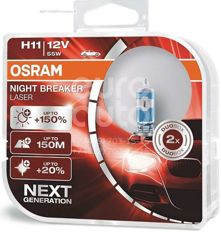 Отзывы на Комплект ламп H11 12V 55W PGJ19-2 NIGHT BREAKER LASER +150% больше света 2шт.(1к-т) Osram 64211NLHCB 1шт