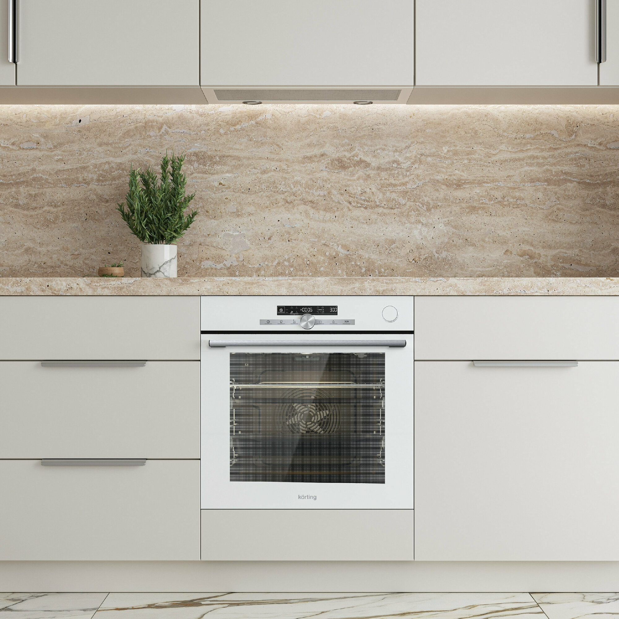 Встраиваемая газовая духовка Korting Встраиваемый 60 см, Motion, 77 л, 12 режимов, очистка паром, белый цвет