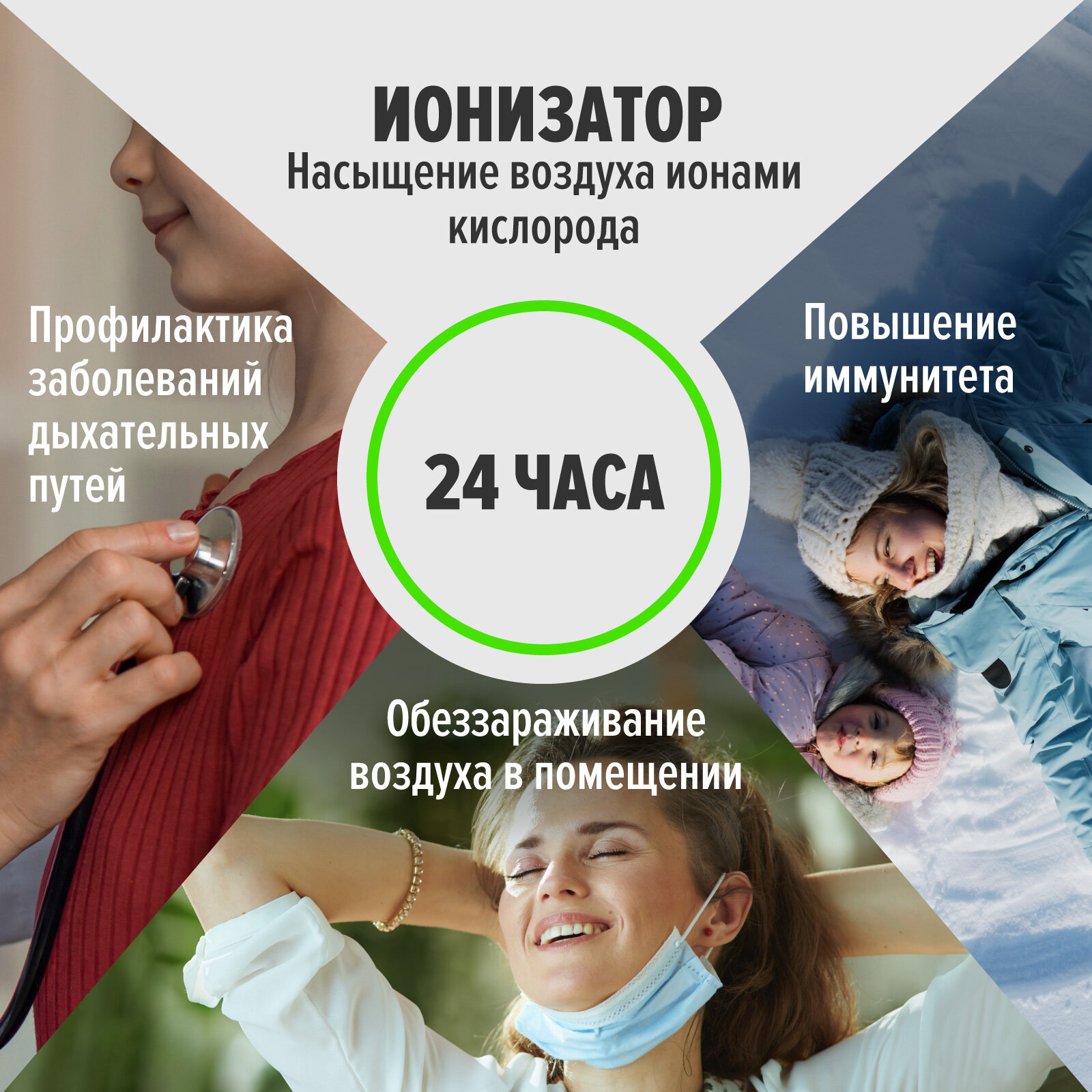 | Тип ионизатора | униполярный (отрицательные ионы) |