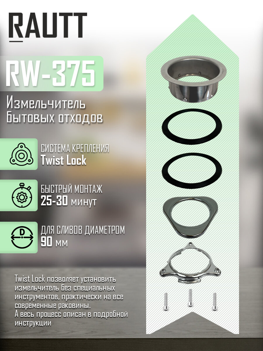 Измельчитель бытовых отходов RAUTT, RW-375, электрический, встраиваемый, 375 Вт, 1500 мл, измельчитель пищевых отходов кухонный 12 900 ₽