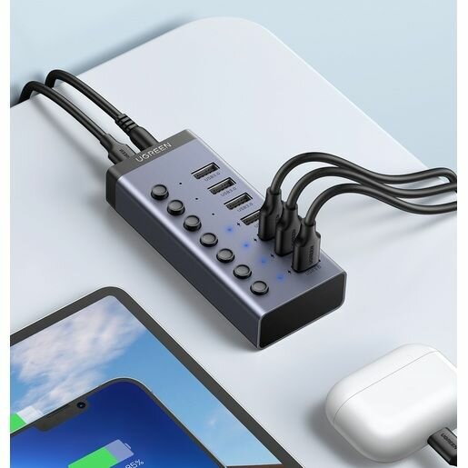Отзывы на Хаб UGREEN CM481 (90307) USB-C to 7-Port USB-A 3.0 Hub DC 12V EU. Цвет: черный